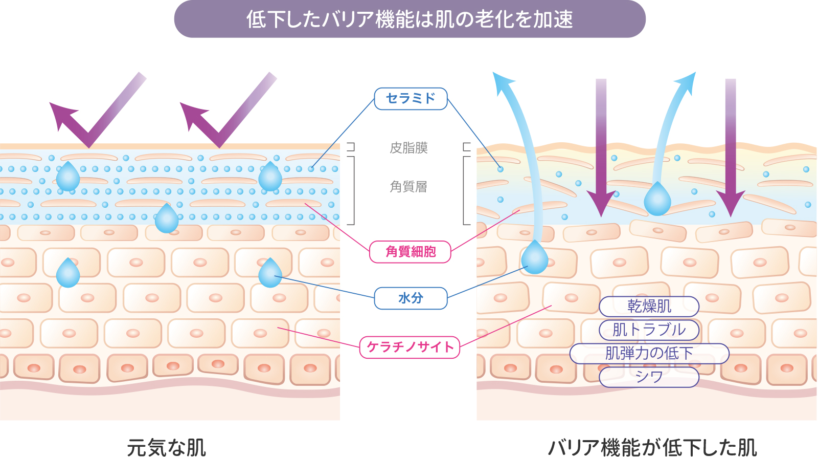 肌のバリア機能が低下すると、老化が加速します。